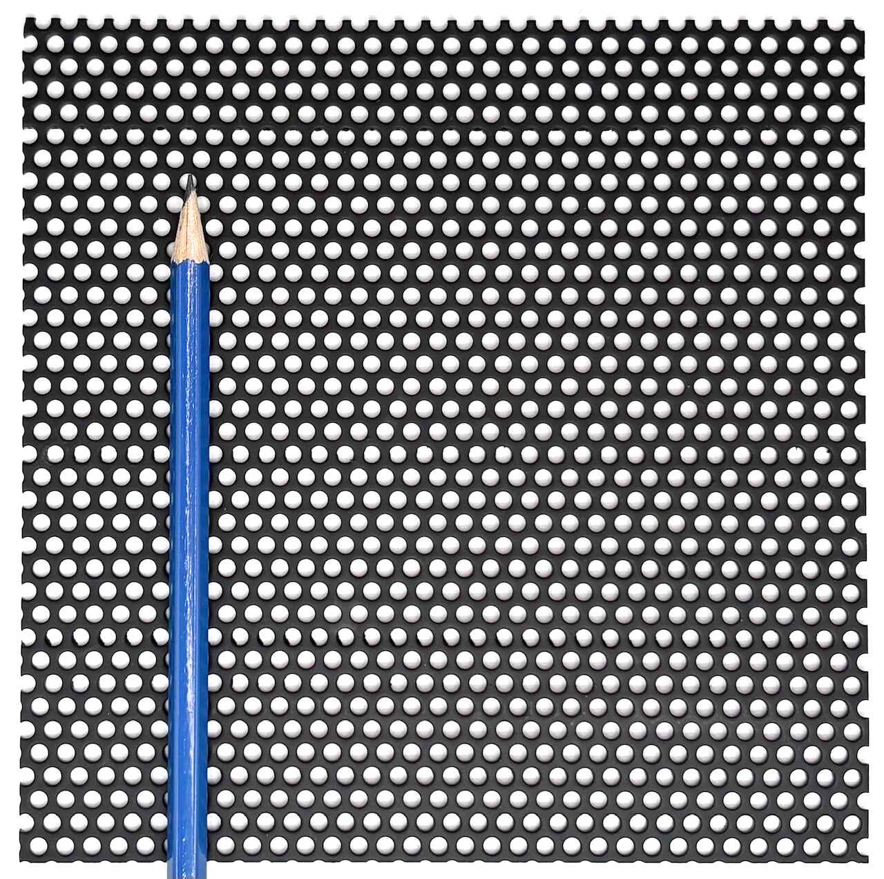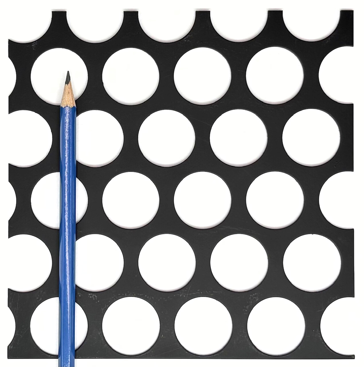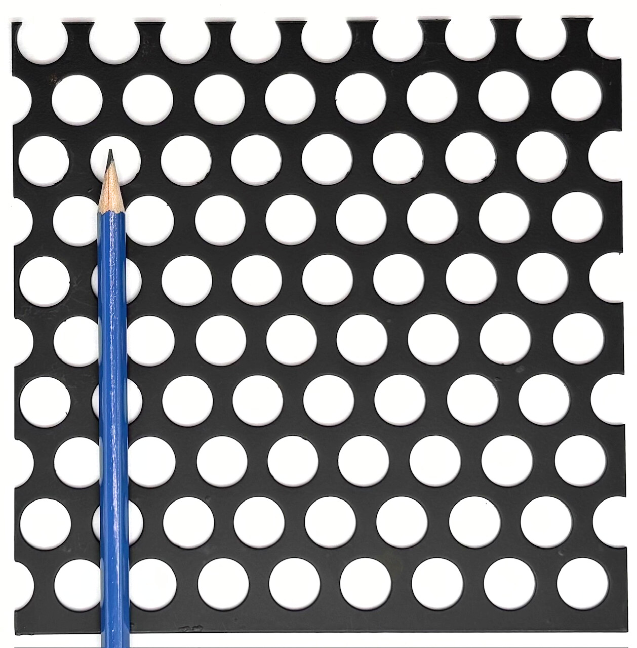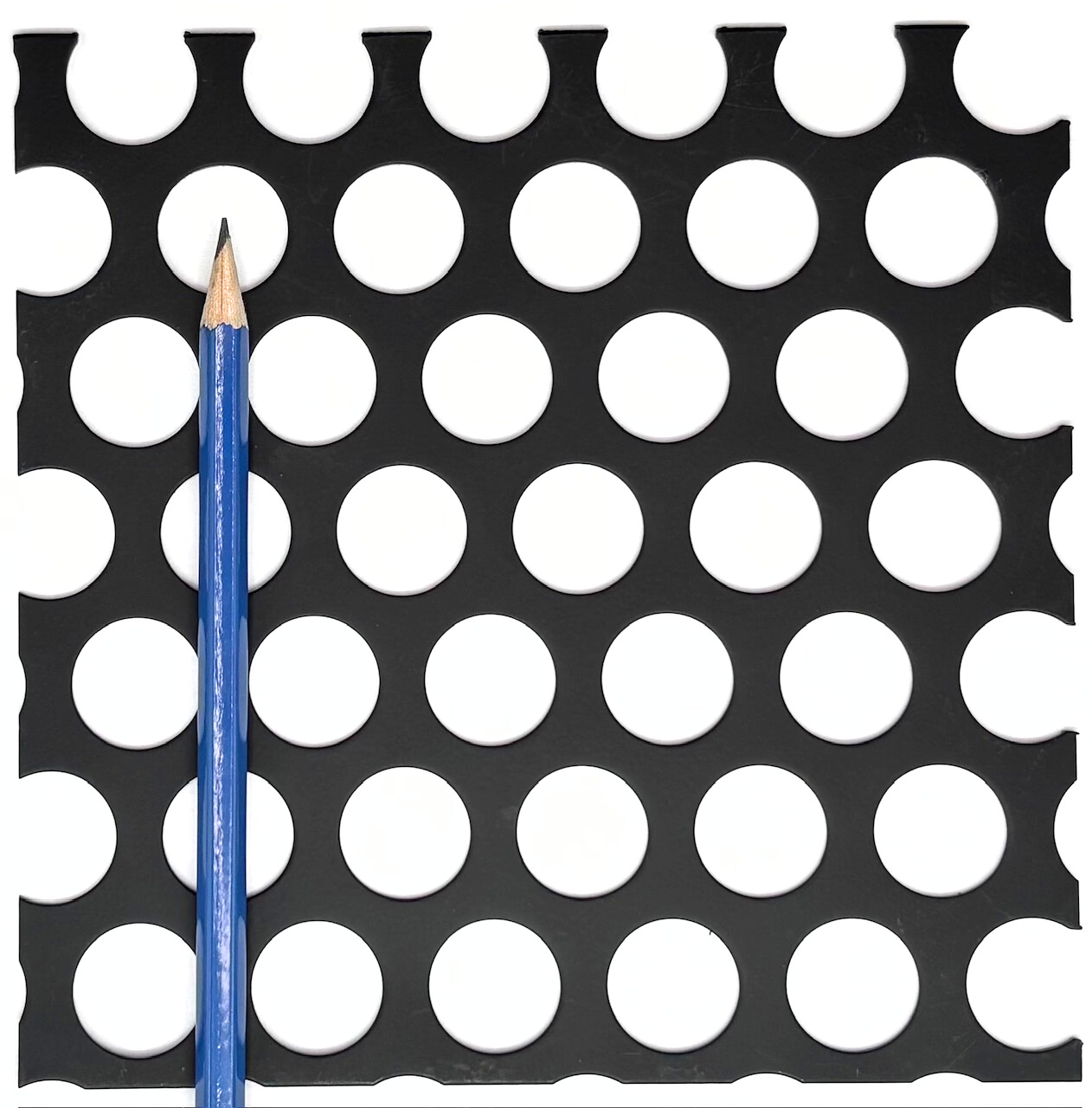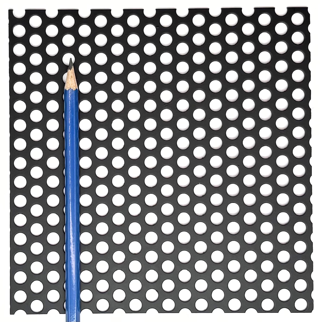 Mild steel round patterns are a very attractive option for both design and architectural purposes. Our round hole patterns can be used in millwork, railings, infills, privacy screens, and many other applications where cost effective panels are needed. Unlike our design perforated patterns (which vary from 16 to 22 gauge in thickness depending on the pattern), our mild steel round hole perforated patterns are only available in 16 gauge thick sheets for all hole diameters that we stock. Rite Way Fencing stocks hole diameters ranging from 1/8” to 1.00” in mild steel, much finer hole sizes with applications in filtration are available in our stainless steel catalog of round hole products. Please note that none of our mild steel material is finished with any sort of deterrent for rust, if this product is used outside without being finished it will rust and corrode over time. Powder coating and plating options are available for an additional charge, for more information about our finishing options please feel free to contact us .