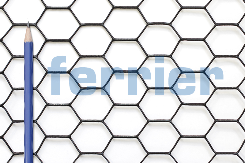 Chicken wire is a family of wire mesh that can be manufactured from a variety of materials such as mild (plain) steel, galvanized wire, stainless steel wire, and galvanized wire that has been PVC coated.  Thin gauge wires are twisted together to create the hexagonal pattern.  There are two styles of twist, normal (straight) twist and reverse (double) twist.  Rite Way Fencing’s ½” and 1” galvanized chicken wire mesh/hex netting is reverse twist, our stainless steel is normal twist and our black PVC coated is reverse twist.